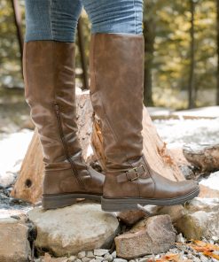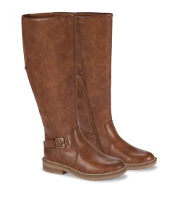 Soak in all the Fall season has to offer in the Baretraps Autumn Wide Calf riding boot. This tall shaft boot is constructed of premium synthetic materials and features a zippered closure, a chunky block heel with treaded sole and a fashionable buckle closure.