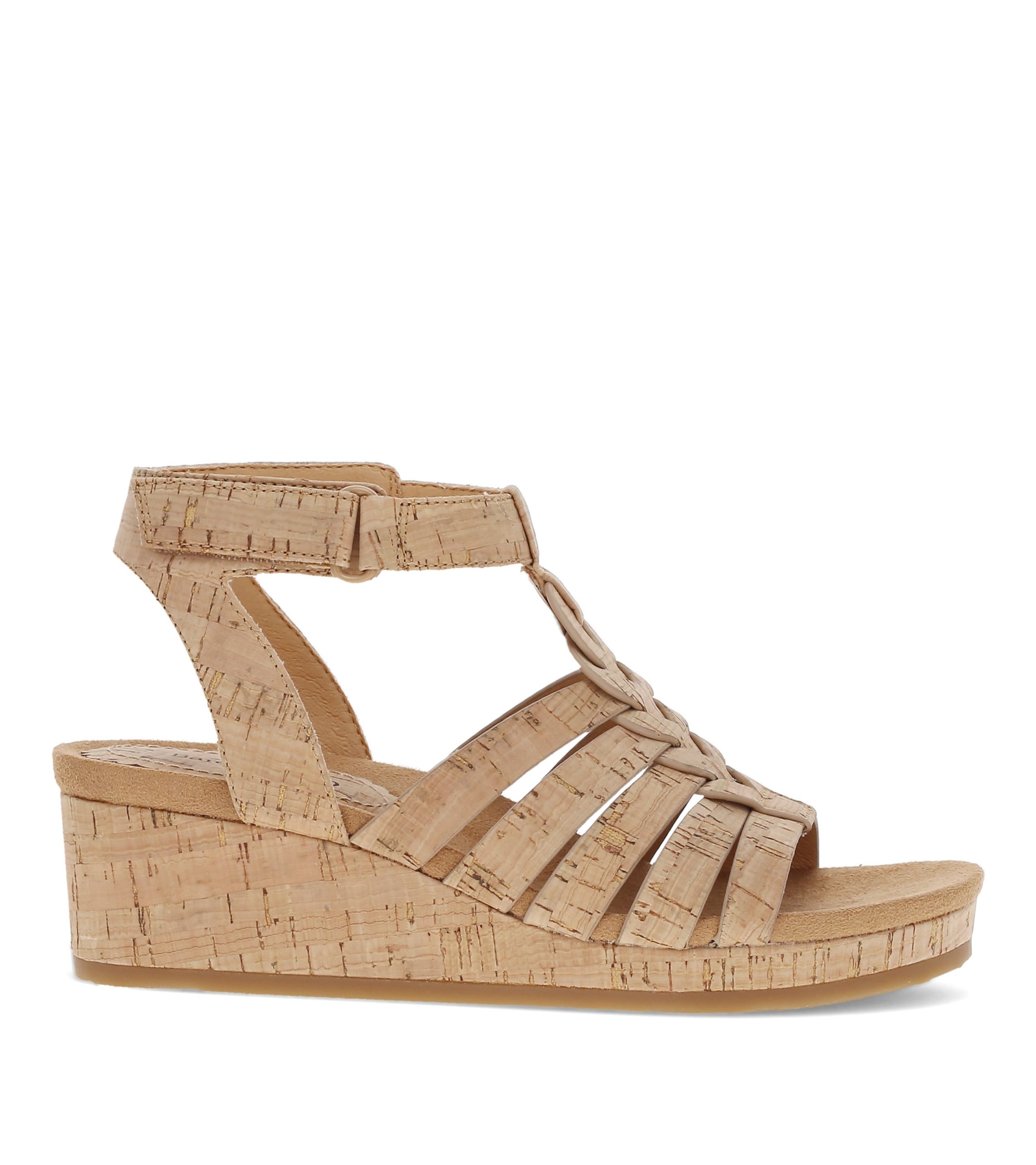 Discover the Baretraps Nickie Wedge Sandal, where timeless fashion meets modern flair.Featuring a braided, Gladiator-esque silhouette on a trendy wedge heel and made from natural cork, these sandals offer an organic, eye-catching look. The side hook and loop closure make for quick adjustments and a cushioned comfort insole plus flexible outsole combo provide all-day support. Perfectly versatile, style them with a flowy maxi dress for an evening out or pair with shorts and a tee for a relaxed daytime look.